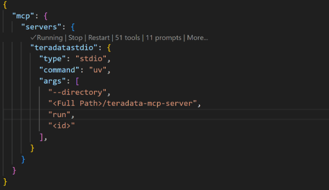 Make sure to replace <full path> with the actual location of the teradata-mcp-server directory if it didn’t load itself.